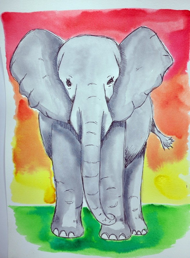- Watercolor Elephant with Pen and Ink (Level 2)